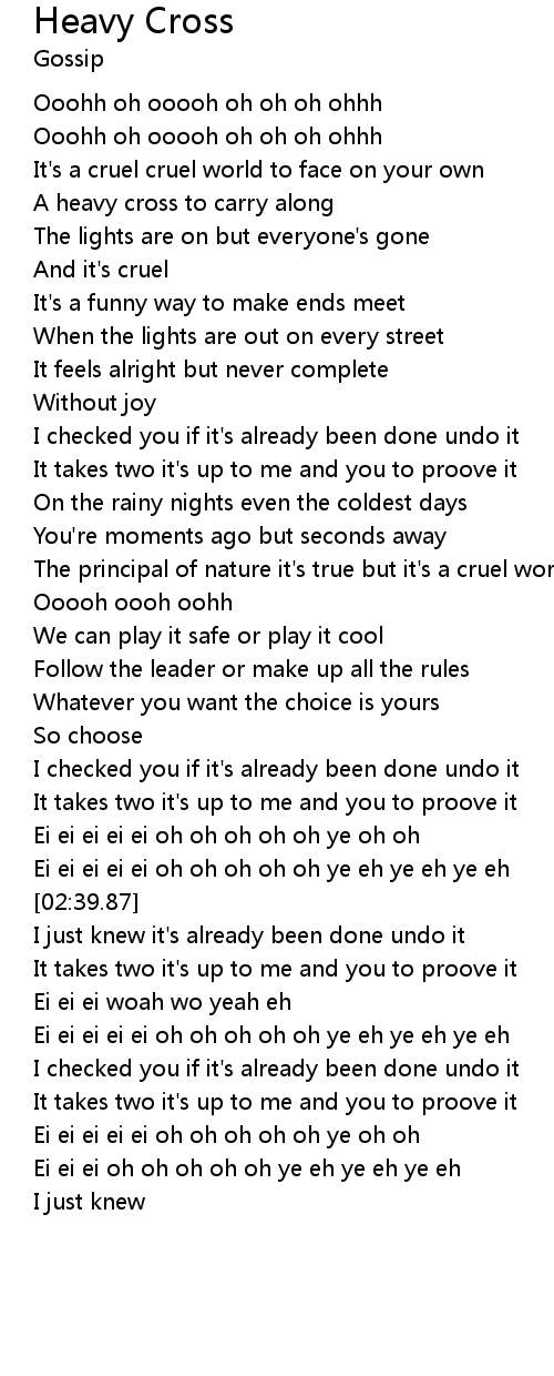 It's a cruel cruel world to face on your own |