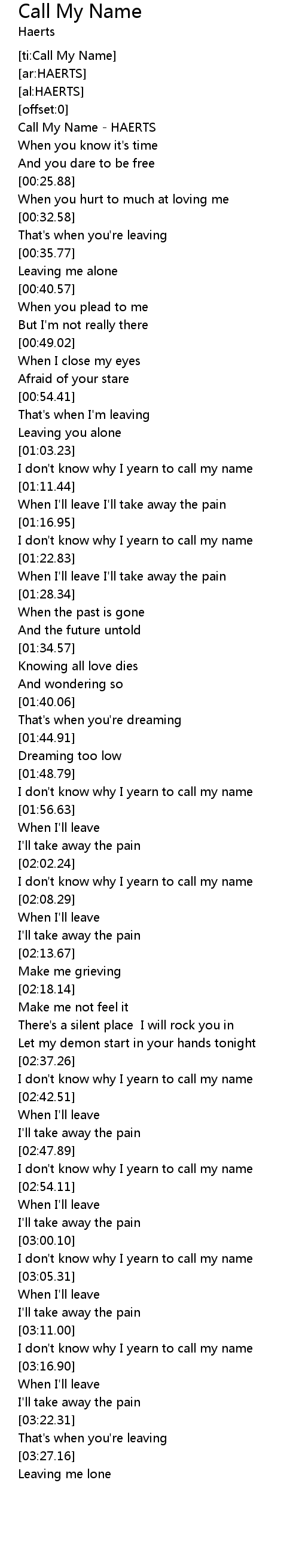 | [00:02.42] | Call My Name - HAERTS |