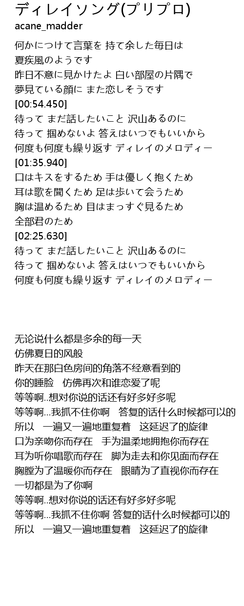 | 歌曲 | ディレイソング(プリプロ) |