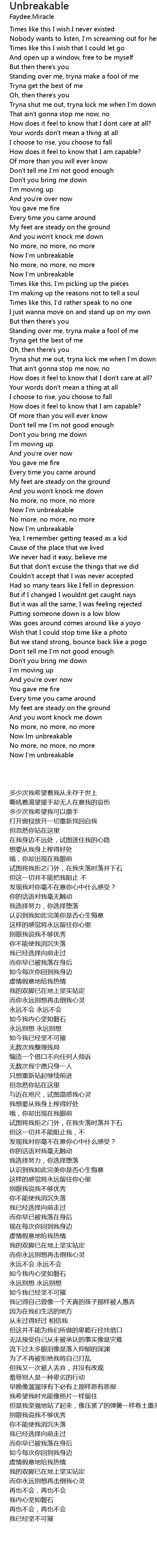 Now I'm unbreakable |