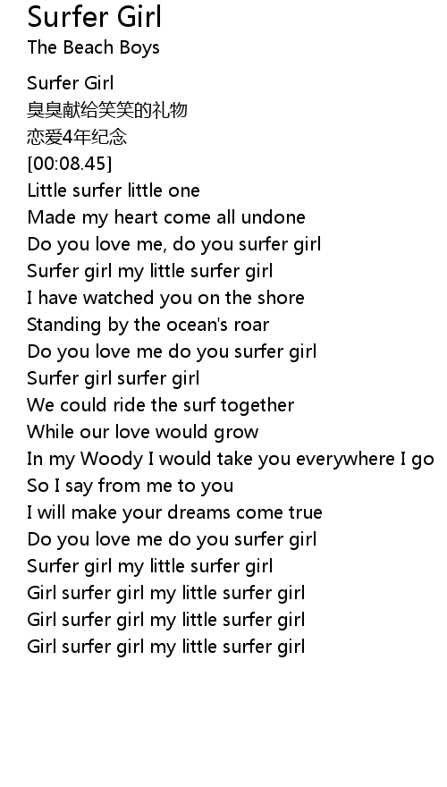| [02:20.00] | Girl surfer girl my little surfer girl |