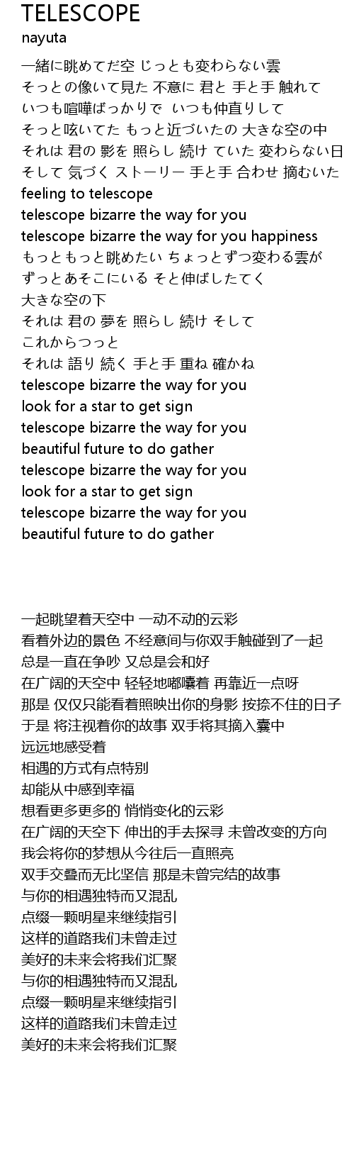 | [01:55.600] | telescope bizarre the way for you happiness |
