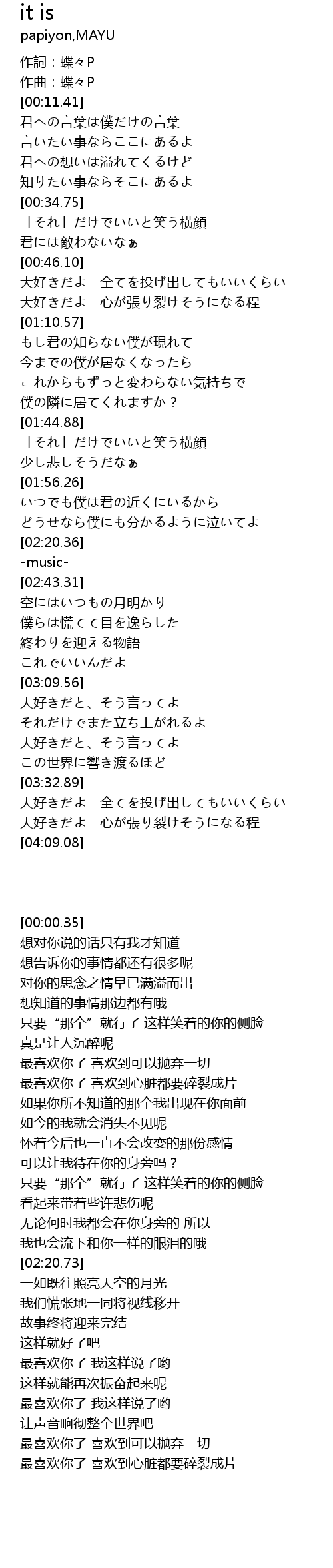 | [00:00.35] | 作詞:蝶々P |