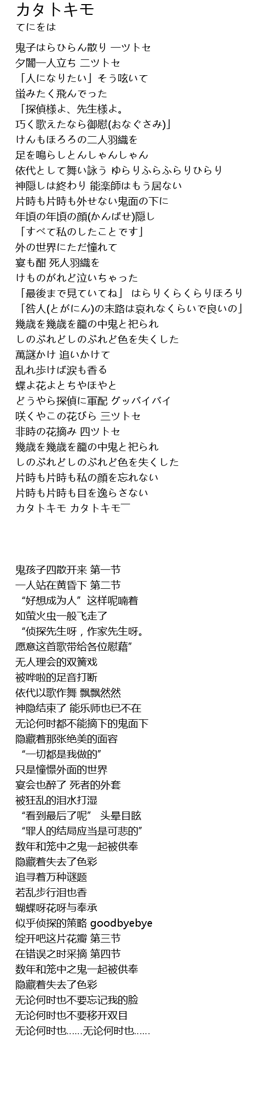 | [03:54.39] | カタトキモ カタトキモ―― |