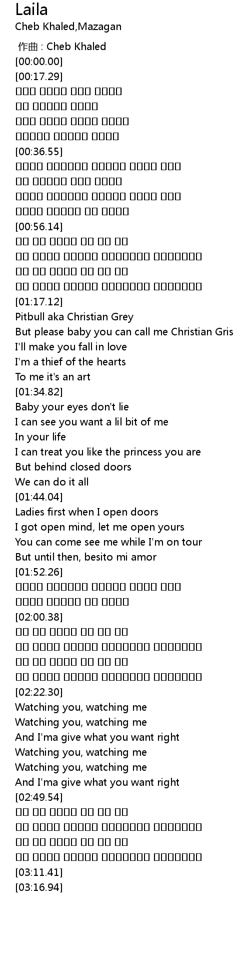 | [00:00.000] | 作曲 : Cheb Khaled |
