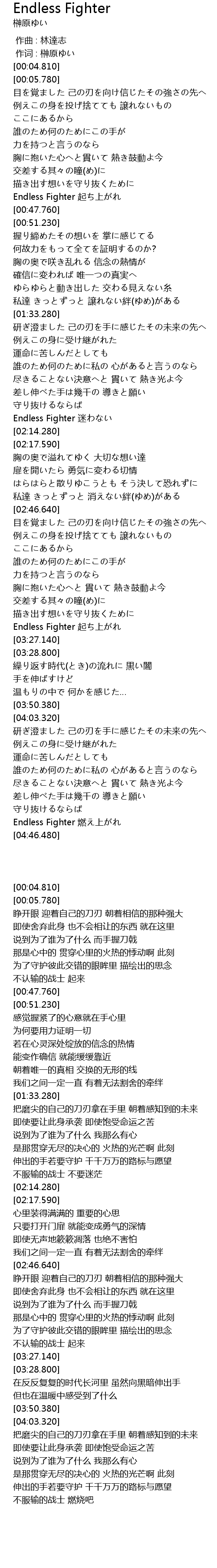 | [04:42.660] | Endless Fighter 燃え上がれ |