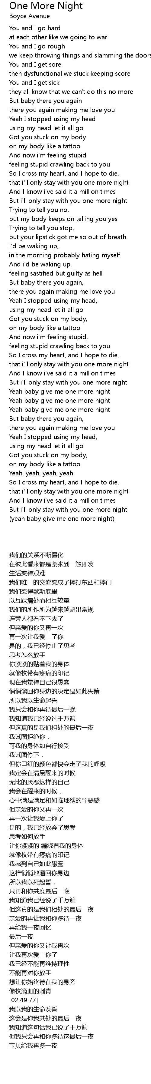 But i'll only stay with you one more night |