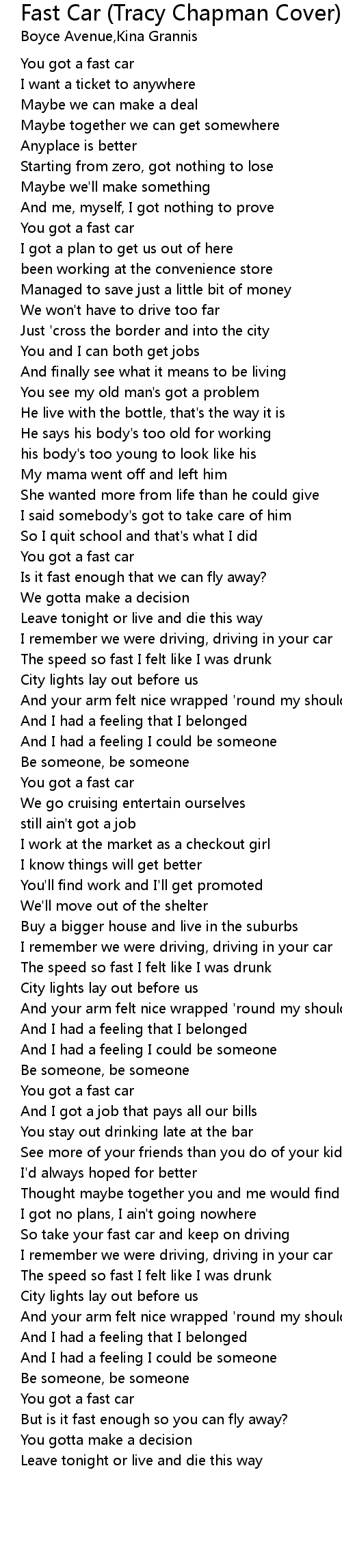 You got a fast car |