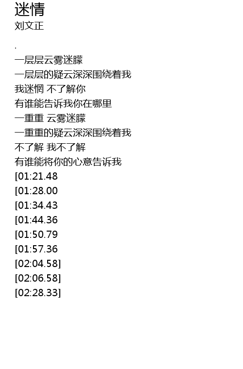 | [02:30.33][01:21.48] | 你对我情深意浓 |