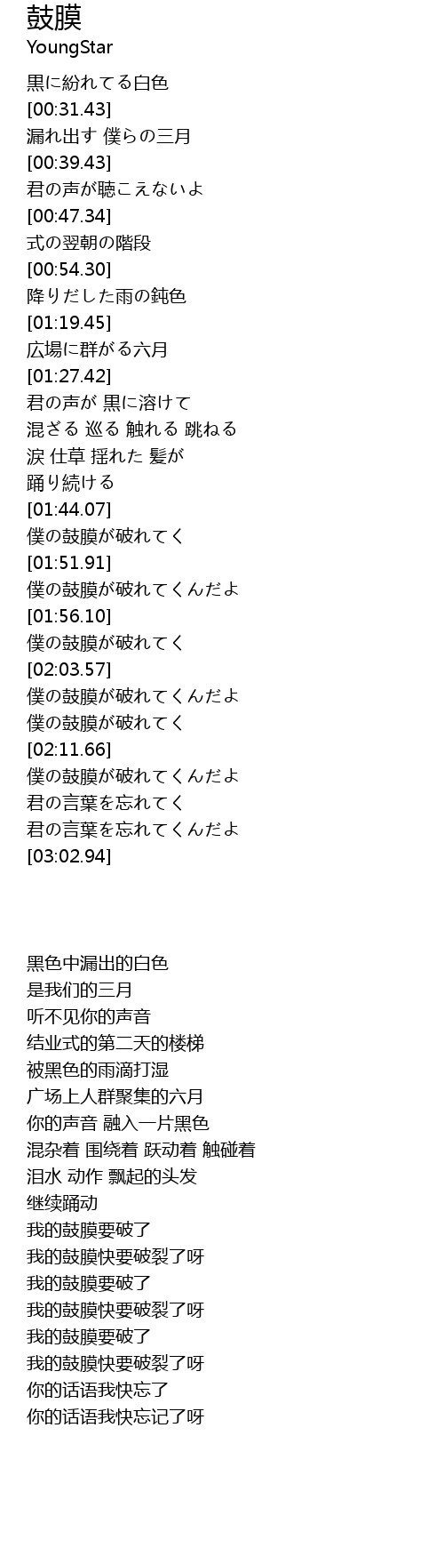 | [01:48.81] | 僕の鼓膜が破れてく |