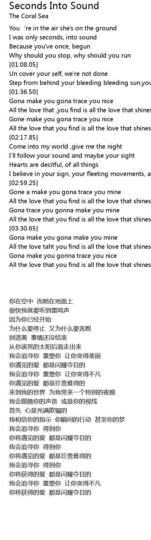 | [04:16.71] | All the love taht you find is all the love that shines |