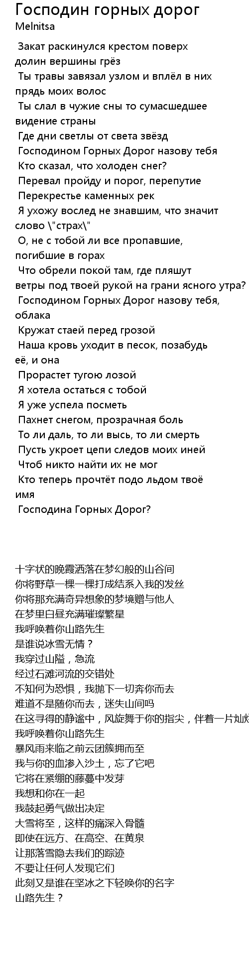 | [01:00.952] | Господином Горных Дорог назову тебя |