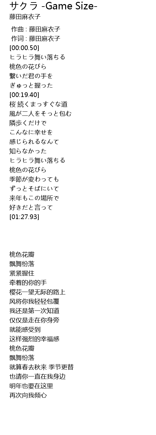 | [00:00.00] | 作曲 : 藤田麻衣子 |