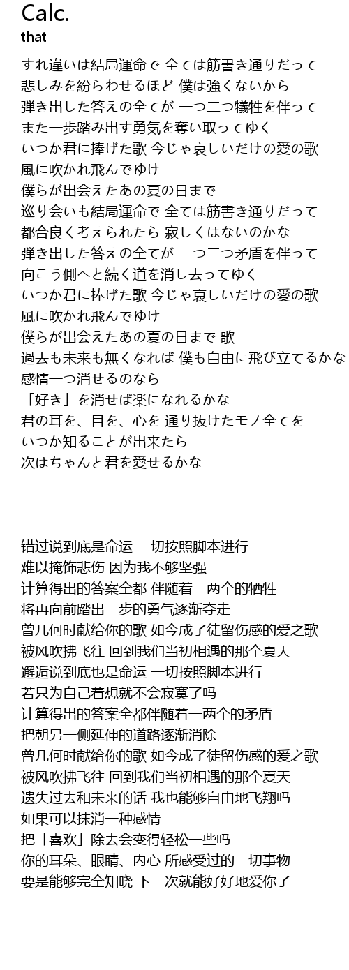 | [00:54.37] | いつか君に捧げた歌 今じゃ哀しいだけの愛の歌 |