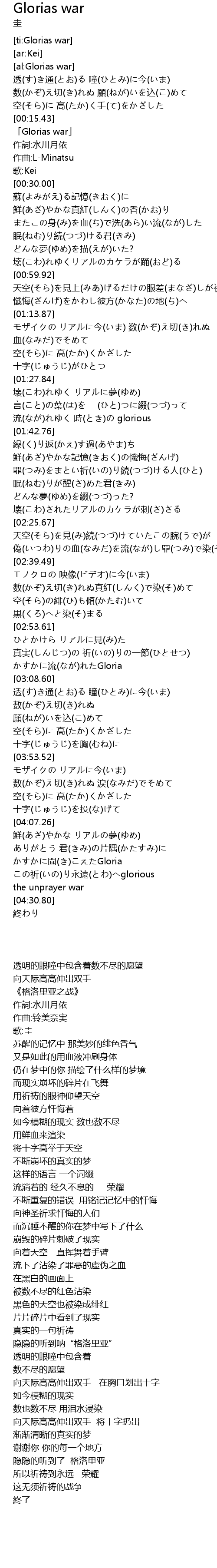 | [04:14.88] | かすかに聞(き)こえたGloria |