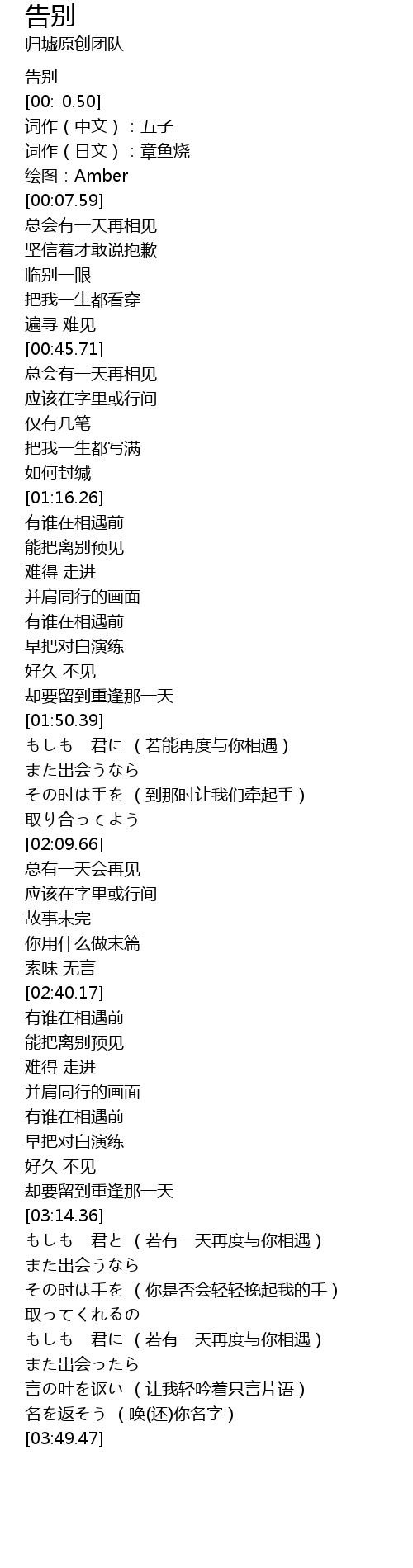 | [00:48.06] | zǒng huì yǒu yì tiān zài xiāng jiàn |