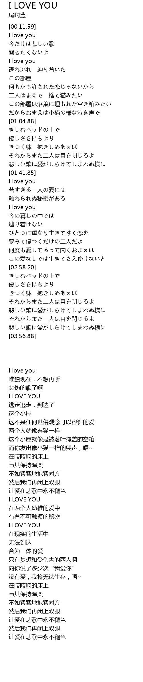 | [02:19.37] | I LOVE YOU |