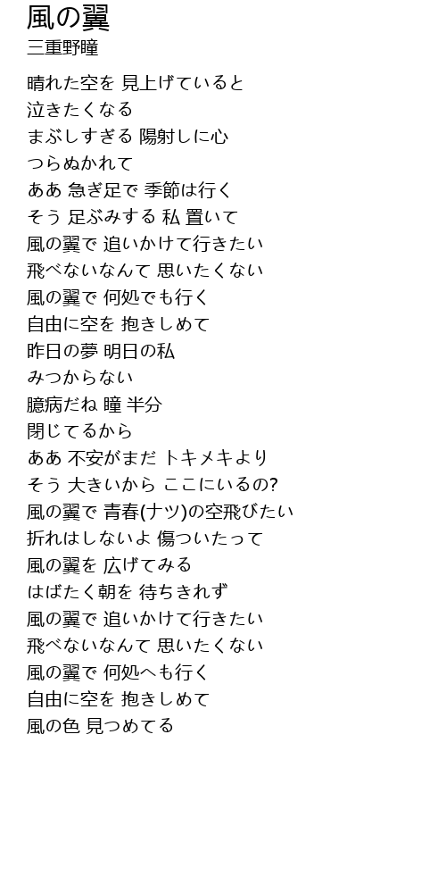 | 風の翼で 青春(ナツ)の空飛びたい | |