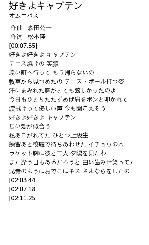 | [00:58.92] | 好きよ好きよ キャプテン |