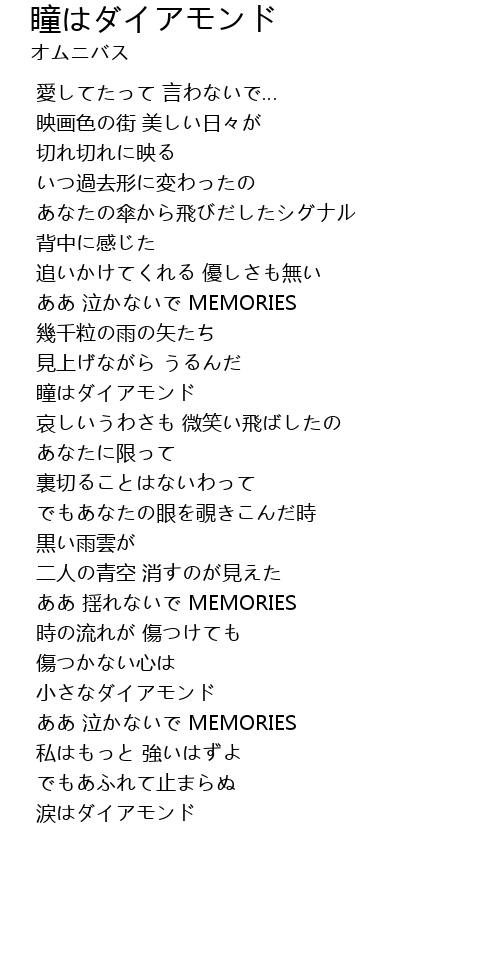| [01:49.868] | 瞳はダイアモンド |