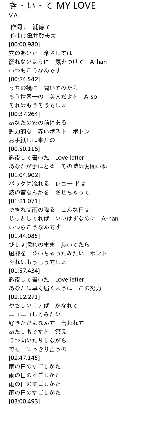 | [00:52.520] | 徹夜して書いた Love letter |