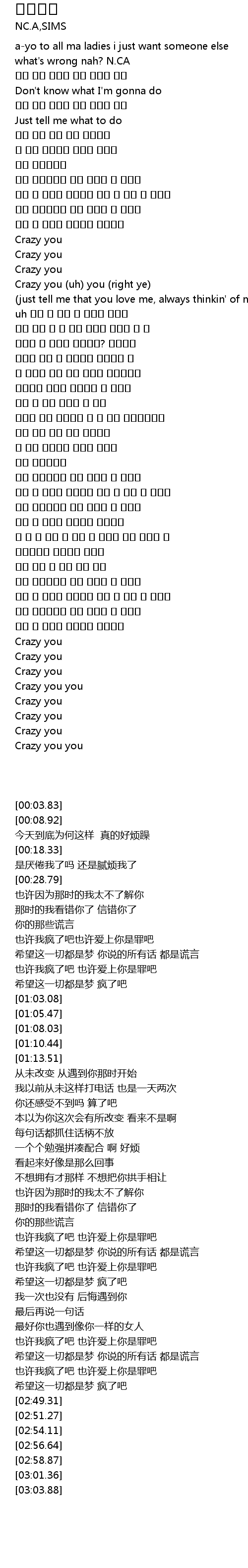 | [01:10.44] | Crazy you (uh) you (right ye) |