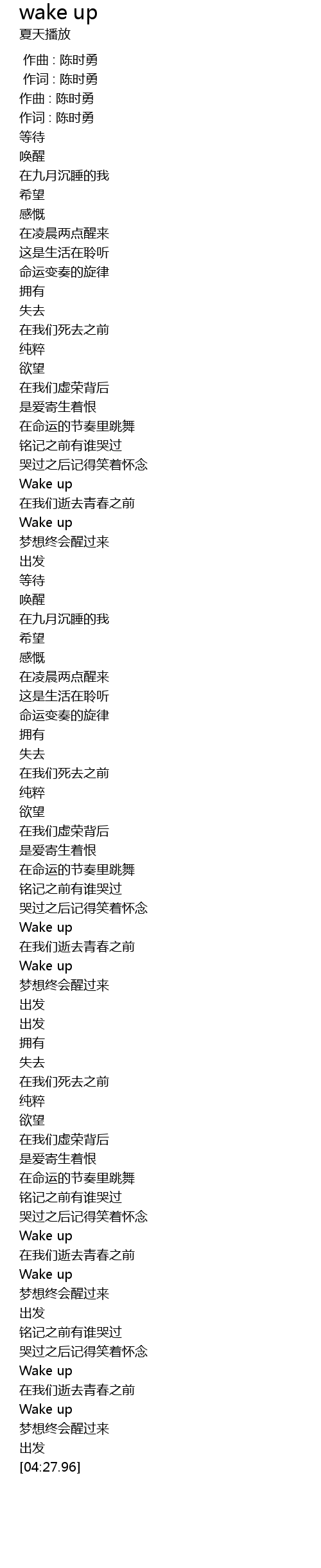 | [01:50.38] | zài líng chén liǎng diǎn xǐng lái |