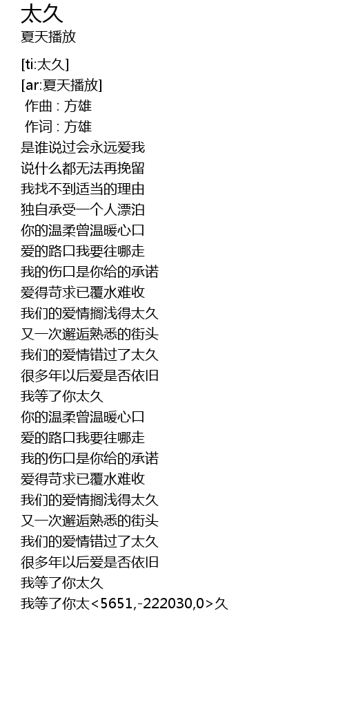 | [03:36.446] | 我等了你太<5651,-222030,0>久 |