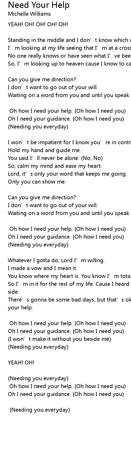 | [x4] Oh how I need your help. (Oh how I need you) | |