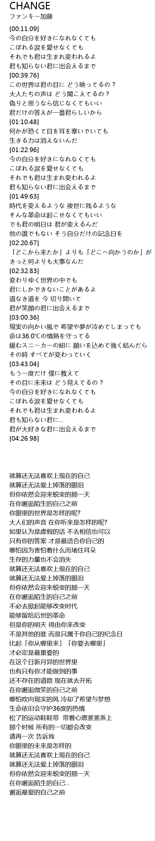 | [00:13.64] | 今の自分を好きになれなくても |