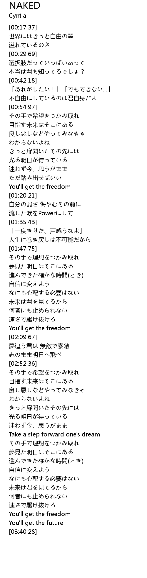 | [02:53.16] | その手で希望をつかみ取れ |
