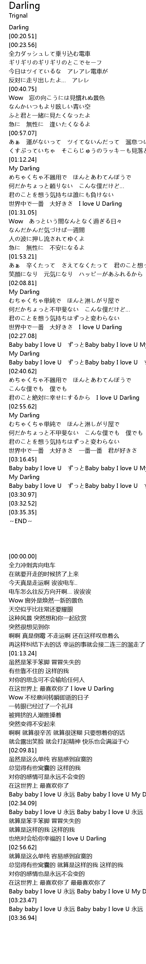 | [02:49.37] | jūn jué duì xìng I love U Darling |