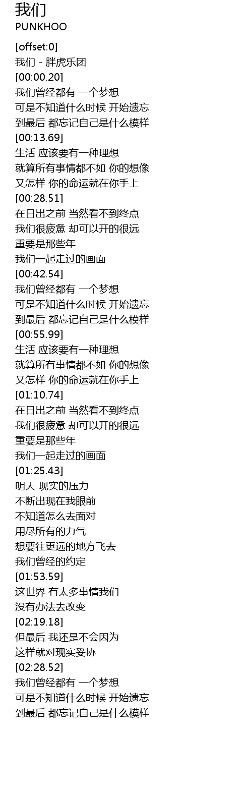 | [00:00.01] | 我们 - 胖虎乐团 |