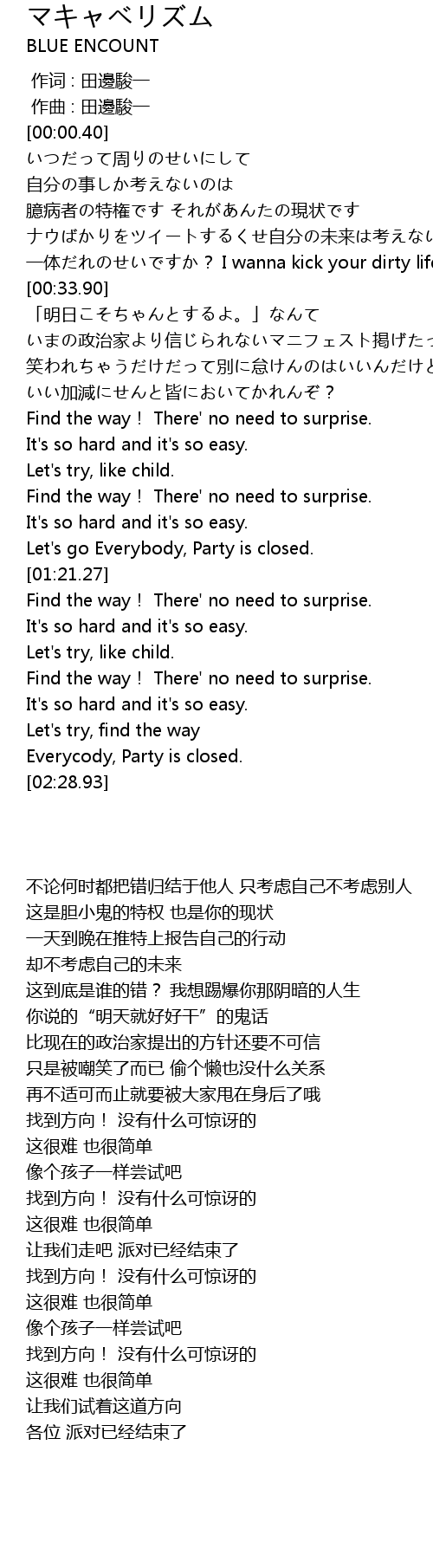 | [00:30.27] | 这到底是谁的错? 我想踢爆你那阴暗的人生 |