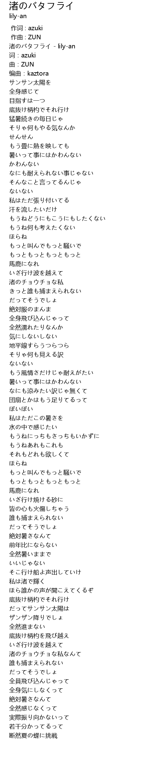 | [00:00.100] | 渚のバタフライ - lily-an |