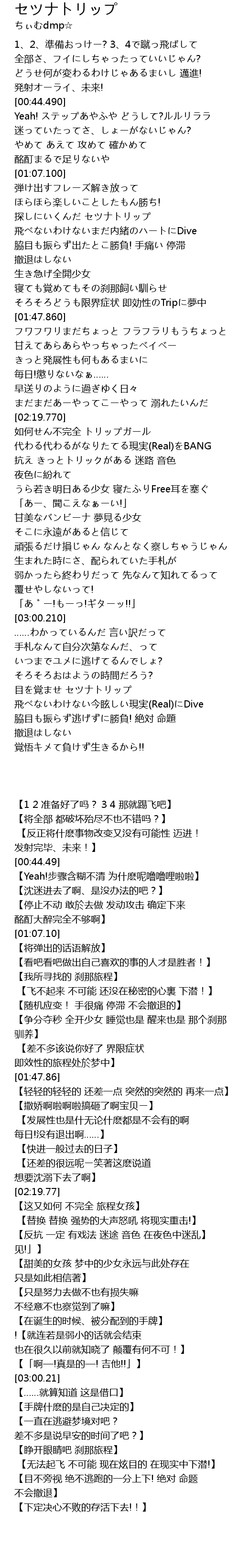 | [03:26.490] | 目を覚ませ セツナトリップ |