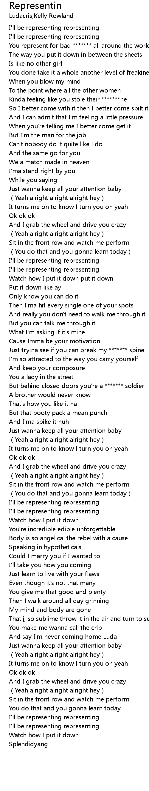 | [00:15.15] | You represent for bad ******* all around the world |