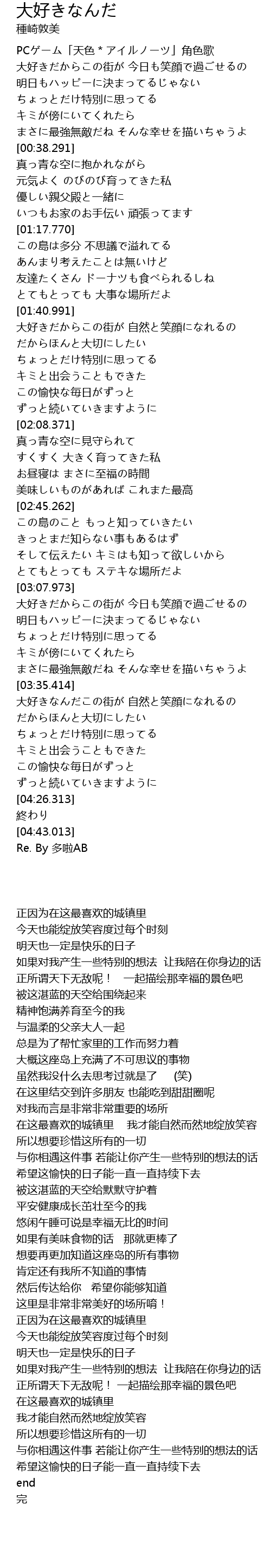 | [03:09.154] | 正因为在这最喜欢的城镇里 今天也能绽放笑容度过每个时刻 |
