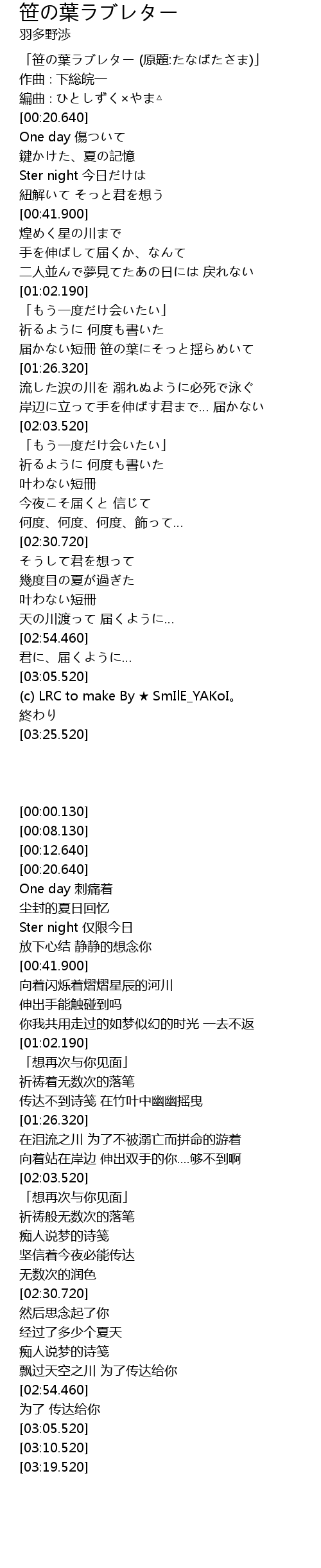| [00:00.130] | 「笹の葉ラブレター (原題:たなばたさま)」 |