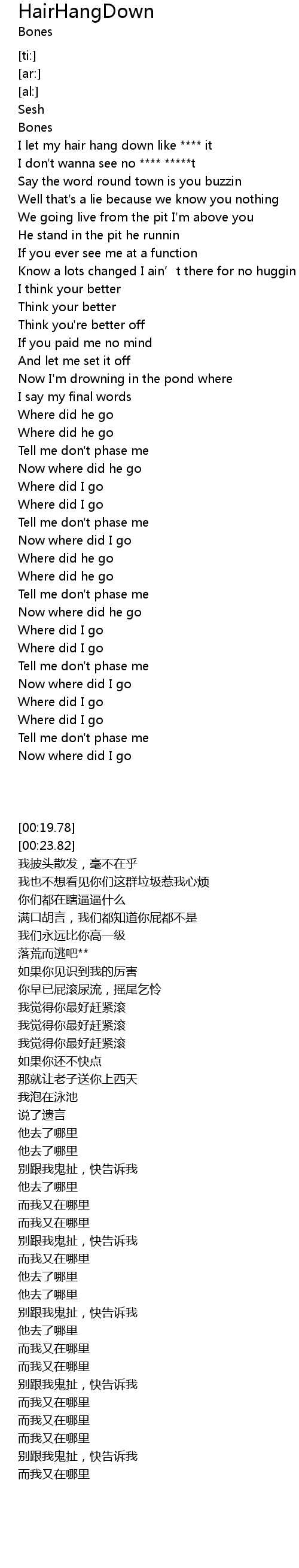 | [00:31.97] | I let my hair hang down like **** it |