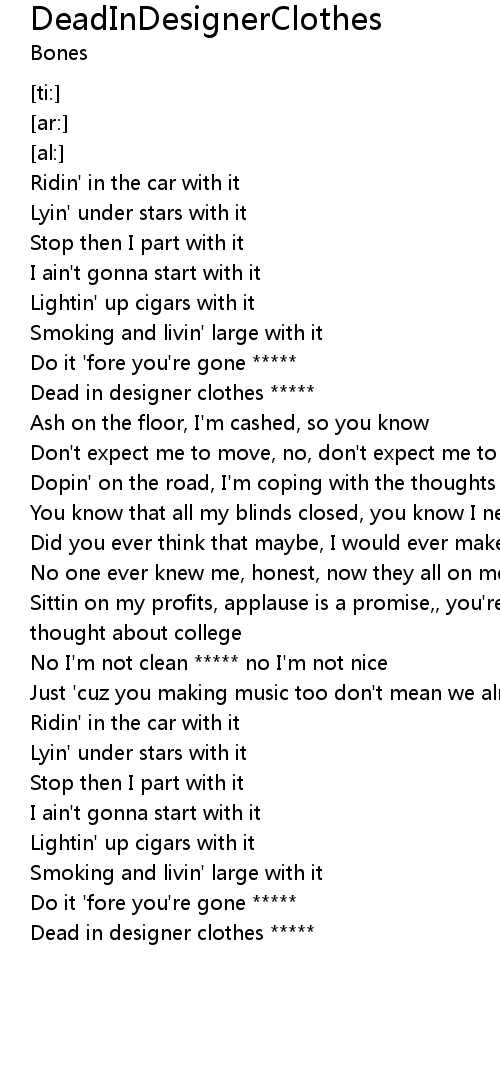 | [00:57.23] | Dead in designer clothes ***** |