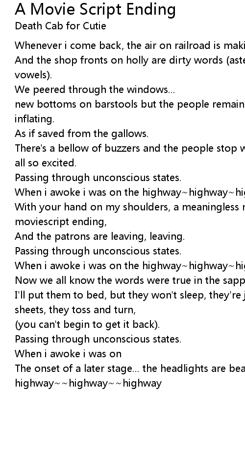 With your hand on my shoulders, a meaningless movement... a moviescript ending, |