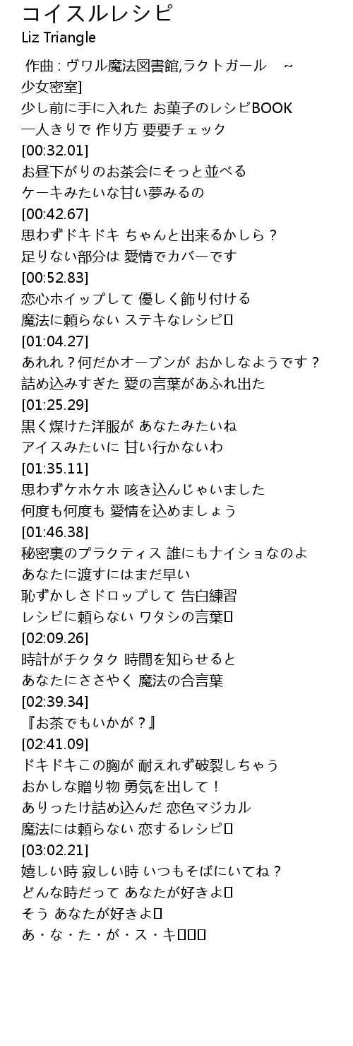| [02:57.15] | 魔法には頼らない 恋するレシピ❤ |