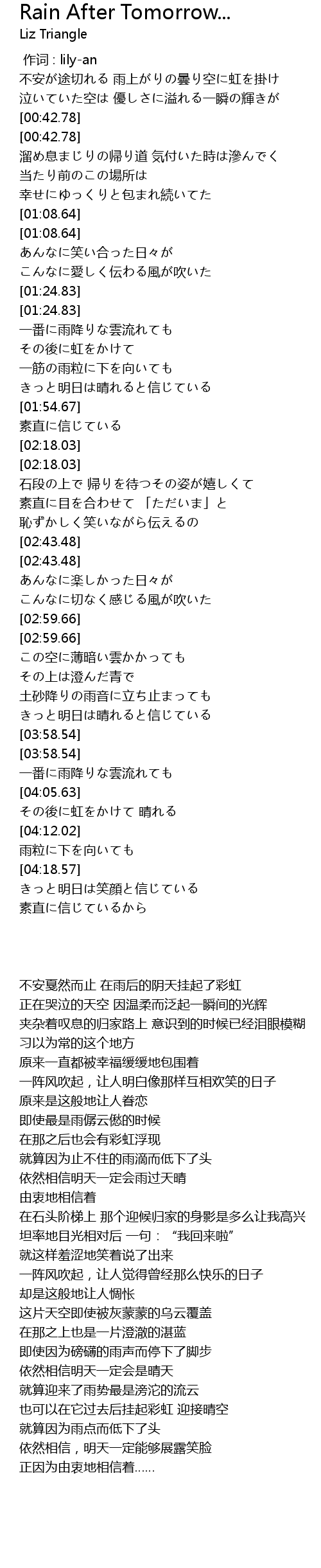 | [04:06.04] | その後に虹をかけて 晴れる |