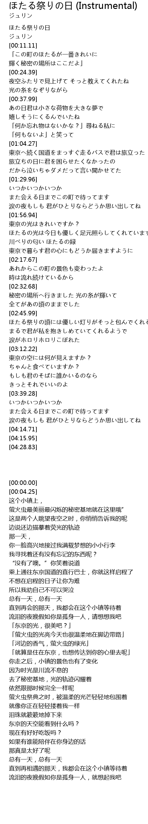 [02:46.86] ほたる祭りの頃には優しい灯りがそっと包んでくれるの
