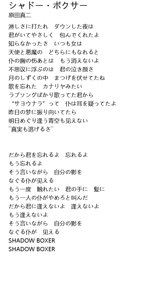 | 歌曲 | シャドー・ボクサー |