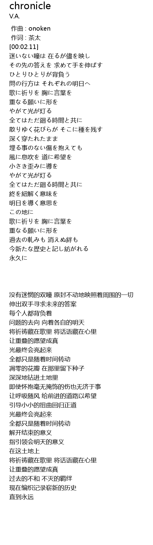 | [03:03.65] | 歌に祈りを 胸に言葉を |