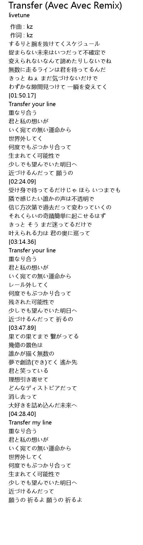 | [01:43.51] | わずかな隙間見つけて 一瞬を変えてく |