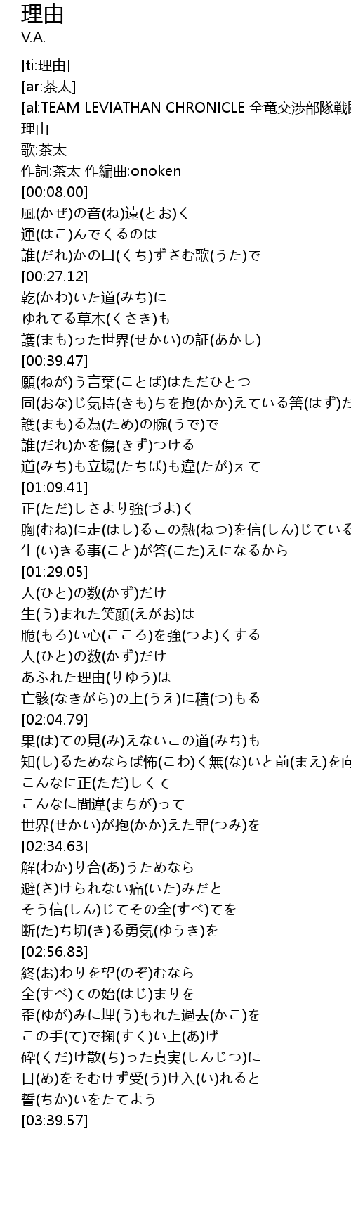 | [00:05.00] | 作詞:茶太 作編曲:onoken |