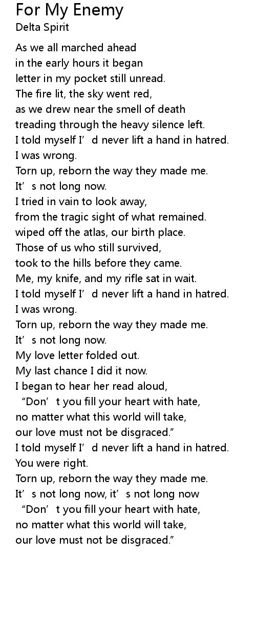 | 歌曲 | For My Enemy |